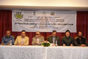 سفارتِ ہند، سفارتِ پاکستان اور وزارتِ فنون و ثقافت کے اشتراک سے اردو اسپیکنگ یونین کی جانب سے منعقدہ تیسری عالمی سہ روزہ اردو کانفرنس ۲۶ تا ۲۸ نومبر ۲۰۱۵ء کو انڈرا گاندھی سنٹر فار انڈین کلچر، فینکس میں بڑی جوش واقبال کے ساتھااس کا اہتمام کیا گیا۔ ہر طرف سے اس کی پذیرآئی ہوئی اور تعریفیں ملیں۔ ہندوستان، پاکستان، مصر اور جرمنی سے تقریباً ۳۰ دانشوروں کی شرکت ہوئی۔ اس کانفرنس کا موضوع ’’عالمی دنیا میں اردو کا مقام ‘‘ تھا۔ کانفرنس کی اتفتاحی تقریب ۲۶ نومبر کو ہوئی۔ بطور مہمانِ خاص صدرِ جمہورےۂ ڈاکٹر آمینہ غاریب فاکم GCSK, CSK, PhD، تشریف فرما تھیں۔ وزیر فنون و ثقافت، عزت مآب سنترام بابو صاحب، سفیرِ ہندوستان، عزت مآب انوپ کمار مدگل صاحب، ڈپٹی ہیڈ آف مشن، احمد ندیم مصطفیٰ ، اور دیگر ہستیاں موجود تھیں۔